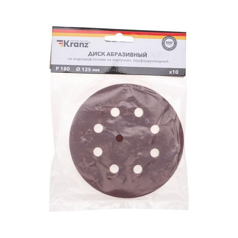 Диск абразивный на ворсовой основе на липучке перфорированный P180 125мм (уп.10шт) Kranz KR-91-1169