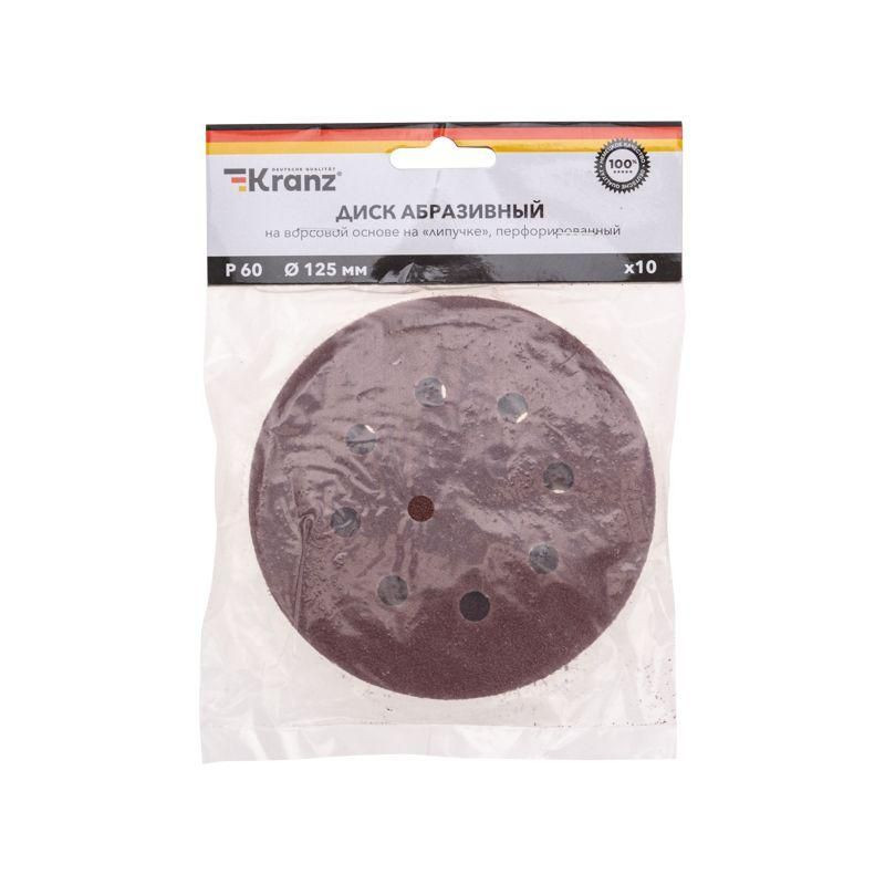 Полное описание: Диск абразивный на ворсовой основе на липучке перфорированный P60 125мм (уп.10шт) Kranz KR-91-1165