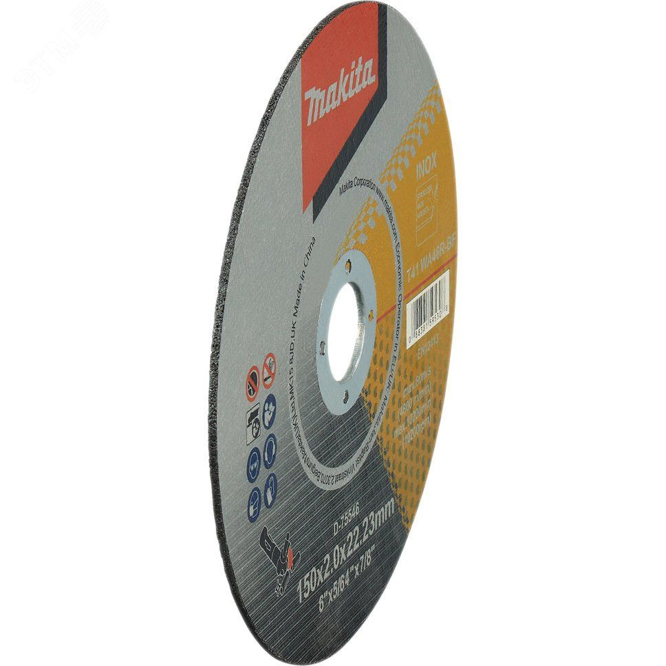 Makita D-75546 абразивный отрезной плоский диск, который предназначен для работы с заготовками и поверхностями из нержавеющей стали. Данный диск имеет внешний диаметр 150 мм и посадочное отверстие размером 22.23 мм. Оснастка имеет увеличенный ресурс работы. Высококачественные материалы способствуют низкой вероятности поломки дисков. Диск осуществляет четкий и быстрый рез.