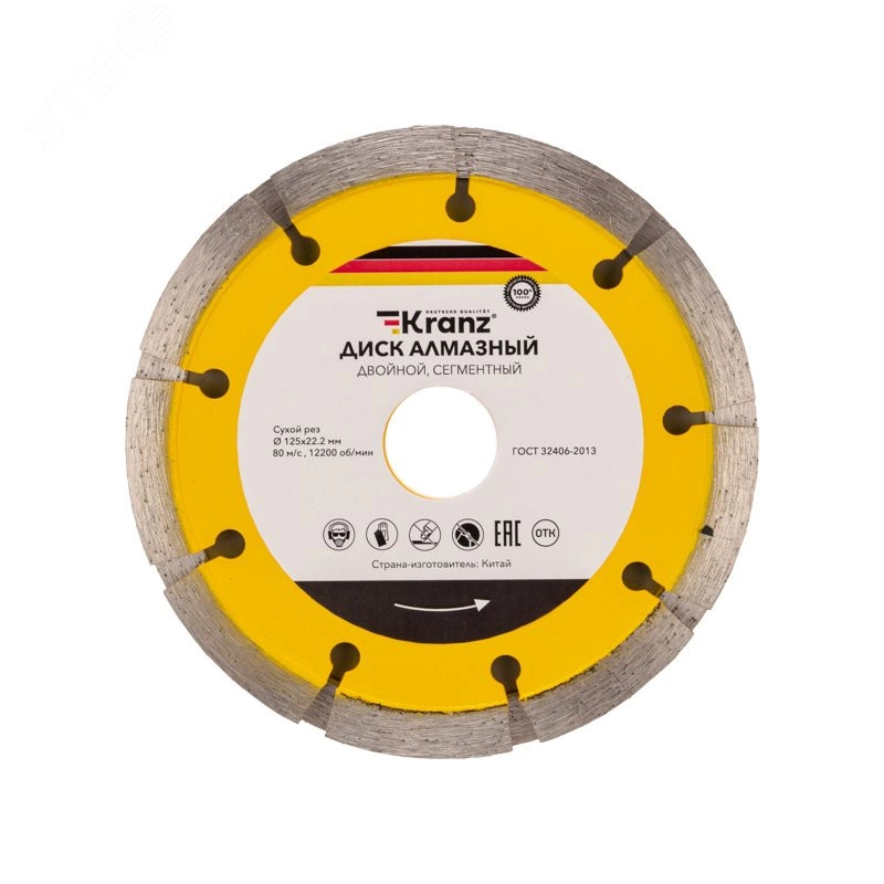 Диск алмазный двойной KRANZ - высококачественный инструмент для штробления различных строительных материалов. Он эффективно справляется с природным и искусственным камнем, армированным и неармированным бетоном, кирпичом, керамикой и керамогранитом. Инструмент предназначен для использования в угловых шлифовальных машинах, ручных электрических плиткорезах и штроборезах. Сочетание высококачественного алмазного покрытия и прочной стальной конструкции гарантирует долгий срок службы диска. Сегментированная форма диска обеспечивает максимально быстрый процесс резки, а система воздушного охлаждения помогает поддерживать оптимальные условия работы.