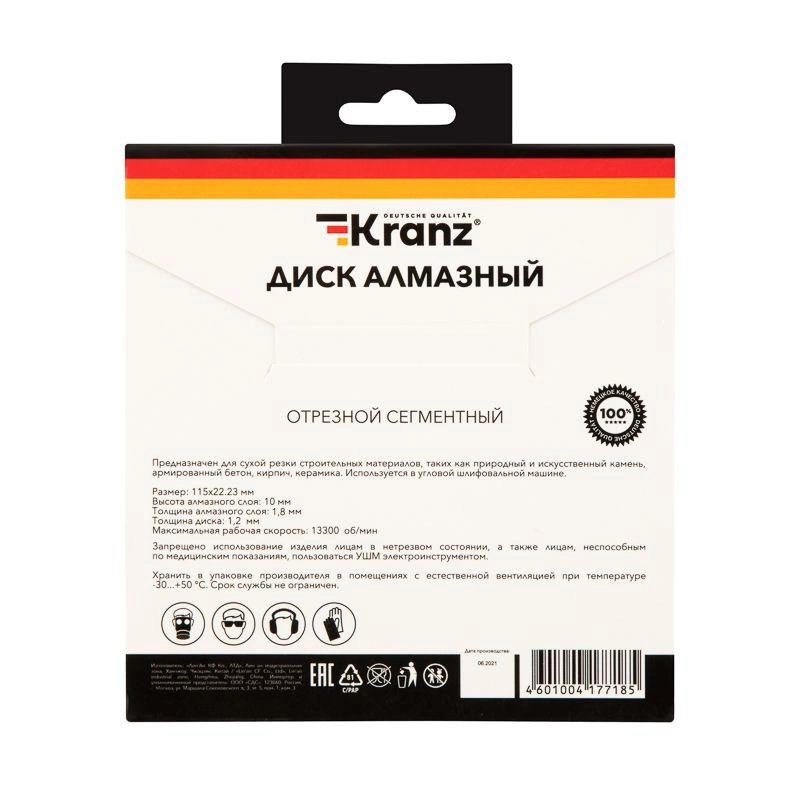 Полное описание: Диск алмазный отрезной сегментный 115x22.2мм Kranz KR-90-0100