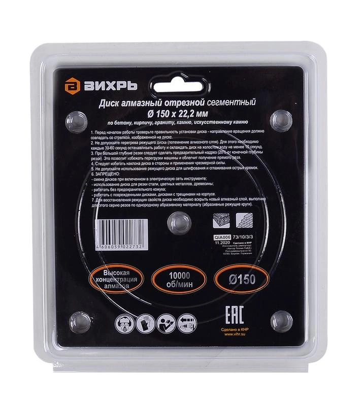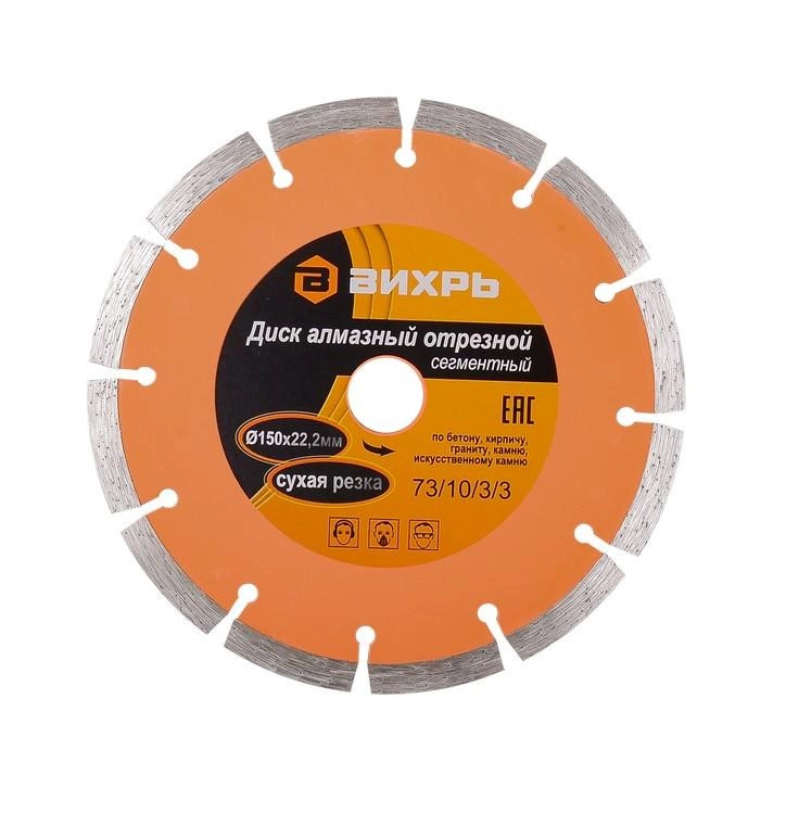 Полное описание: Диск алмазный отрезной сегментный 150х22.2мм сухая резка Вихрь 73/10/3/3