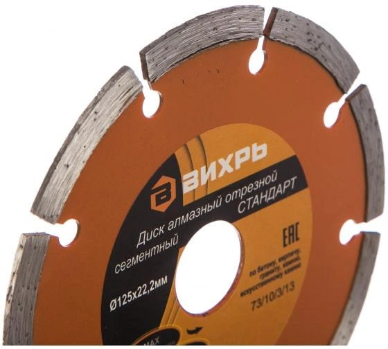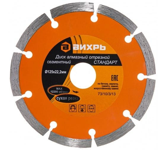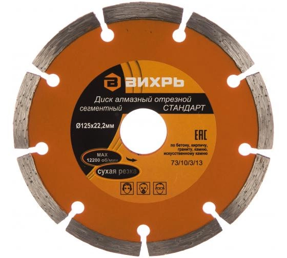 Диск алмазный отрезной сегментный СТАНДАРТ 125х22.2мм сухая резка Вихрь 73/10/3/13