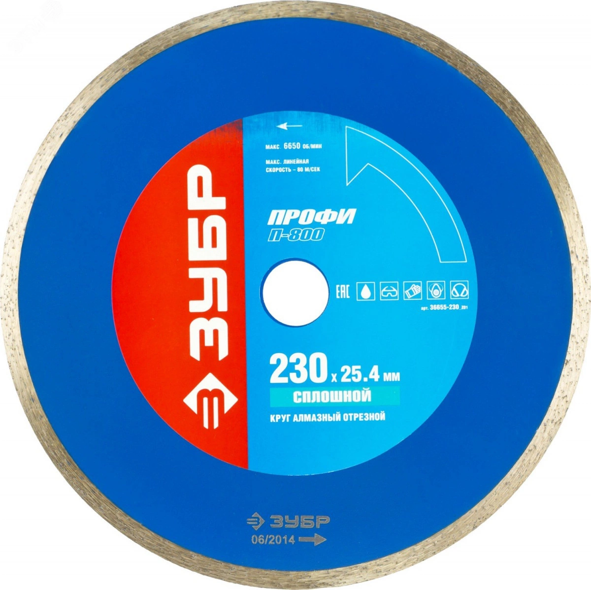 Диск алмазный отрезной сплошной по керамограниту, мрамору, плитке, Т-800 Сплошной 230 мм Профессионал