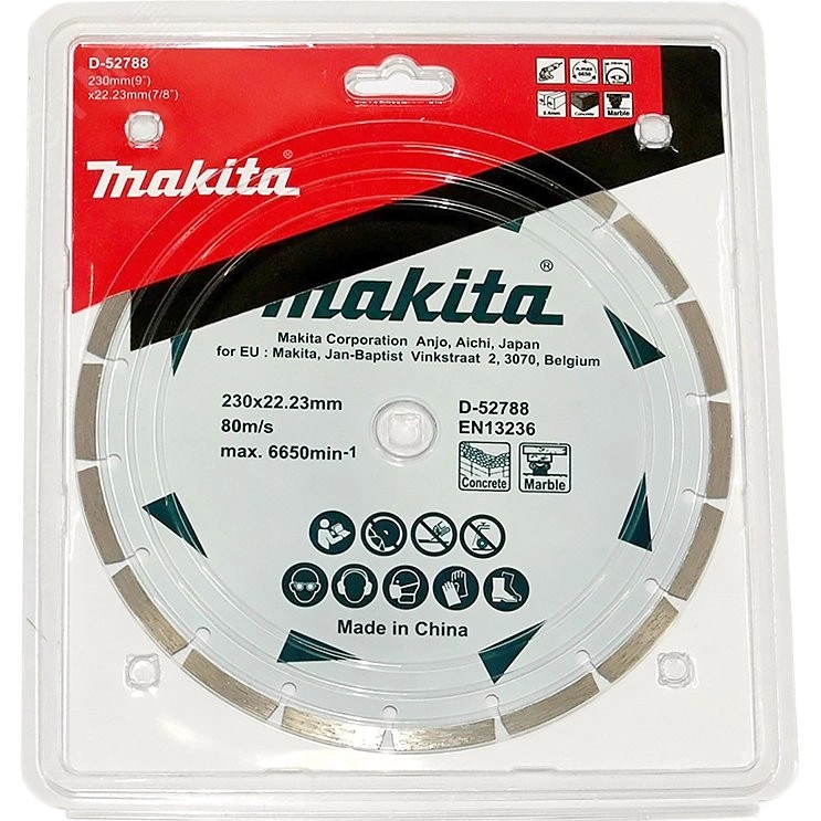 Качественный алмазный сегментированный диск для резки бетона и мрамора, Makita D-52788”. Этот диск обеспечивает быструю и стабильную резку благодаря своей конструкции и использованию алмазов для повышения эффективности и долговечности. Выполнен высококачественными материалами, продлевающими срок эксплуатации.