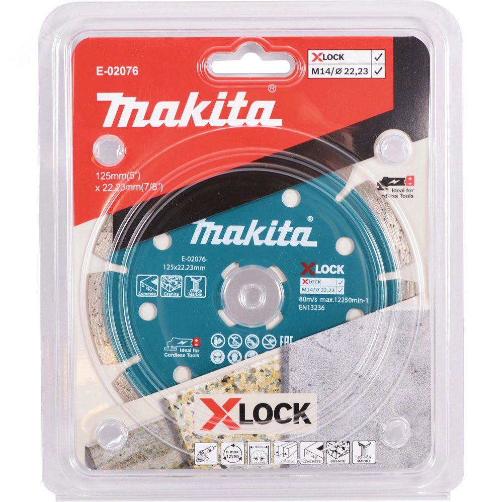 Алмазный сегментированный диск E-02076 от Makita, с диаметром 125 мм и посадочным отверстием 22.23 мм, подходит для сухого реза мрамора, гранита и бетона. Он разработан специально для работы с аккумуляторным режущим инструментом и обеспечивает высокую производительность. Благодаря своей конструкции, этот диск позволяет выполнить до 50-60% больше работы без необходимости замены инструмента на одном заряде батареи.