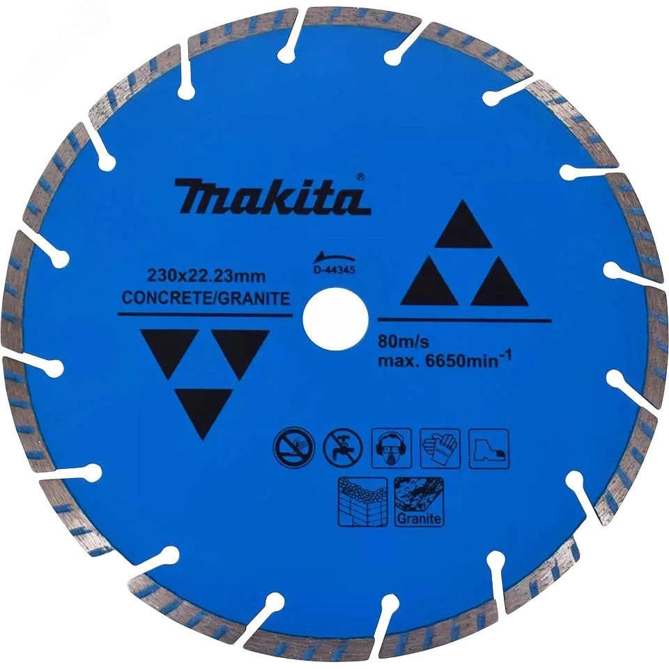 "Алмазный сегментированный рифлёный диск ""Турбо Макита Д-44345"" предназначен для профессиональных работ по бетону, камню и кирпичу. Благодаря своей конструкции, он обеспечивает быструю и стабильную резку, а также увеличивает срок службы диска и уменьшает его износ."