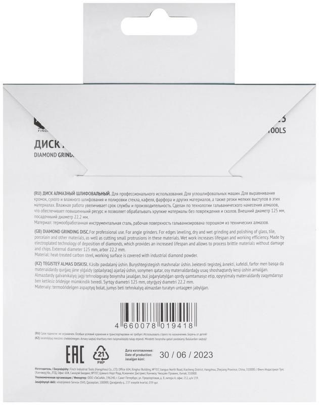 Полное описание: Диск алмазный шлифовальный по с кафелю/керамограниту/стеклу посад. диам. 22.2мм сплошной 125мм FIT 39523