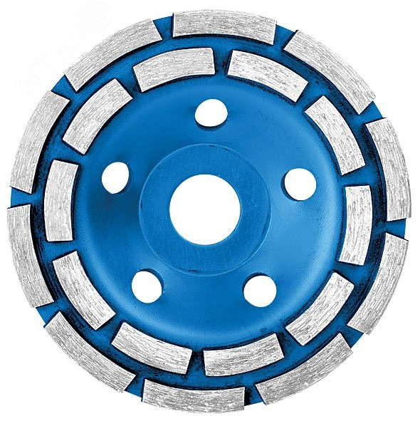 Сегментный. Двухрядный. Для использования с УШМ . Посадочный диаметр 22,2мм. Для устранения неровностей, зачистки и шлифования кирпича, бетона, мрамора, гранита и других твердых материалов. Материал - инструментальная сталь, режущая кромка-расплав с техническими алмазами. Уп - картонная коробка.