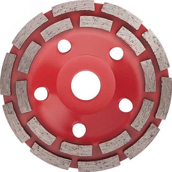 2 ряда сегментов. Для углошлифовальных машин. Посадочный диаметр 22,2 мм. Для работ по бетону, граниту, мрамору и другим материалам. Материал - высокоуглеродистая сталь, режущая кромка с техническими алмазами.