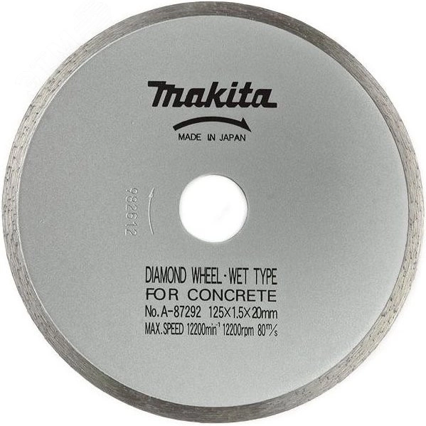 Алмазный диск сплошной по бетону, кирпичу, 125x20, мокрый рез, Makita A-87292. Используется с водяным охлаждением. Высота сегмента – 5.5 мм. Используется при резке бетона, гранита, обожженного кирпича, керамической плитки и мрамора. Цельные диски Makita для мокрой резки - это стандартные алмазные диски для обработки твердых строительных материалов, таких как стекло и керамическая плитка. Цельные диски Makita при резке оставляют ровный край без сколов. Эти диски станут незаменимыми помощниками при проведении строительно-ремонтных работ.