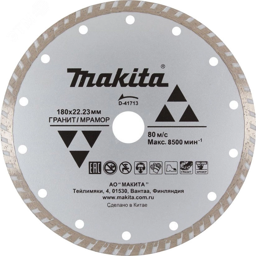 Алмазный диск Makita D-41713 предназначен для сухой резки различных твердых материалов, включая бетон, гранит, отделочный камень, высокопрочный кирпич, мрамор, асфальт и железобетон. Диаметр диска составляет 180 мм, а посадочный диаметр - 22.23 мм. Этот инструмент идеально подходит для строительных и отделочных работ, где требуется быстрое и точное разрезание прочных материалов.