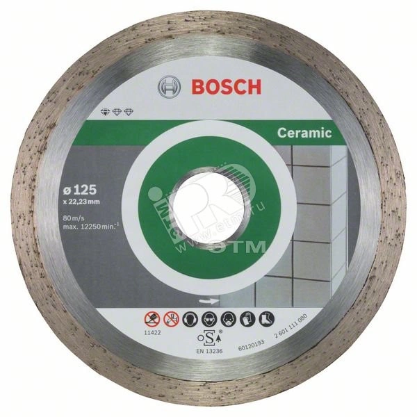 Алмазный отрезной диск Standard for Ceramic обеспечивает надежную резку плитки. Сплошная отрезная кромка позволяет получить ровный результат при работе со всеми видами плитки. Кроме того, центр компетенций по алмазной оснастке Bosch в Швейцарии гарантирует высокие стандарты качества диска. Применять этот диск для резки керамики, фарфора и тонкокаменной керамики.