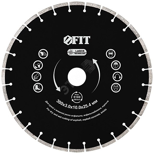 Для бензорезов и швонарезчиков. Для сухой и влажной резки асфальта, асфальтобетона, кирпича. Лазерная приварка сегментов. Высота алмазной режущей кромки 10 мм. Посадочный диаметр 25,4 мм. Материал - высококачественная инструментальная сталь, режущая кромка содержит порошок из технических алмазов. Упаковка - картонный конверт.