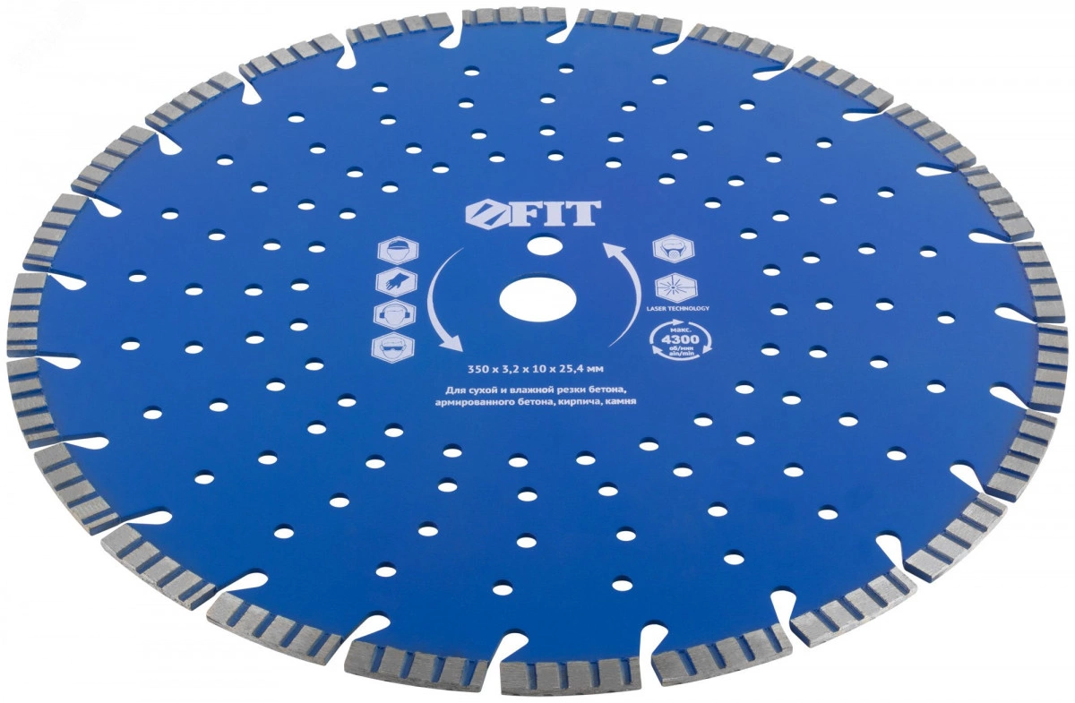 Диск отрезной алмазный cегментный (сухая и влажная резка), для бетона, армированного бетона, камня 350х3.2х10х25.4 мм