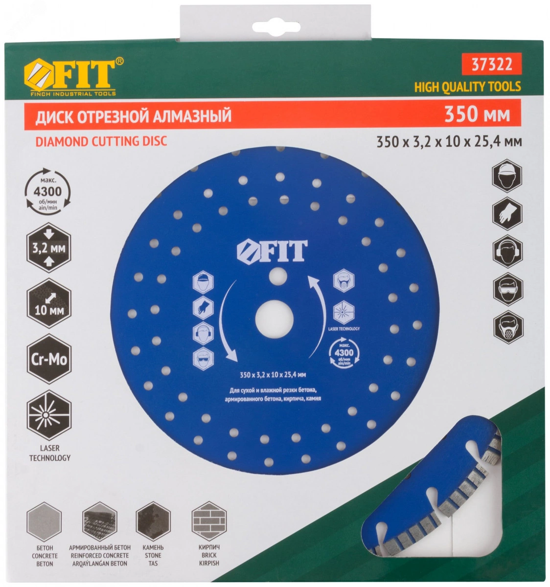Диск обладает универсальностью применения с возможностью работы без принудительного охлаждения|Лазерная приварка обеспечивает наилучшее крепление сегментов, повышая стойкость диска к перегрузкам и перегреву|Усиленный корпус из хром-молибденовой стали