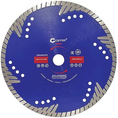 Диск отрезной алмазный, сегментный с защитными секторами CUTOP Profi, 230 x 3.0 x 8.0 x 22.2 мм