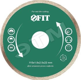 Сплошной, для влажной резки. Предназначен для разрезания кафеля. Посадочный диаметр 22,2 мм. Толщина 1.8 мм. Материал - высококачественная инструментальная сталь, режущая кромка содержит порошок из технических алмазов. Упаковка - картонный конверт.
