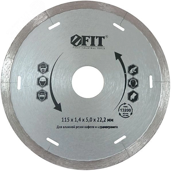 Для влажной резки кафеля и керамогранита. Тонкий рез. Изготовлен по технологии горячего спекания. Толщина кромки 1,4 мм, толщина диска 1,0 мм. Посадочный диаметр 22,2 мм. Предназначен для углошлифовальных машин. Повышенная износоустойчивость. Материал - термообработанная высокоуглеродистая инструментальная сталь, режущая кромка содержит порошок из технических алмазов. Упаковка - картонный конверт.