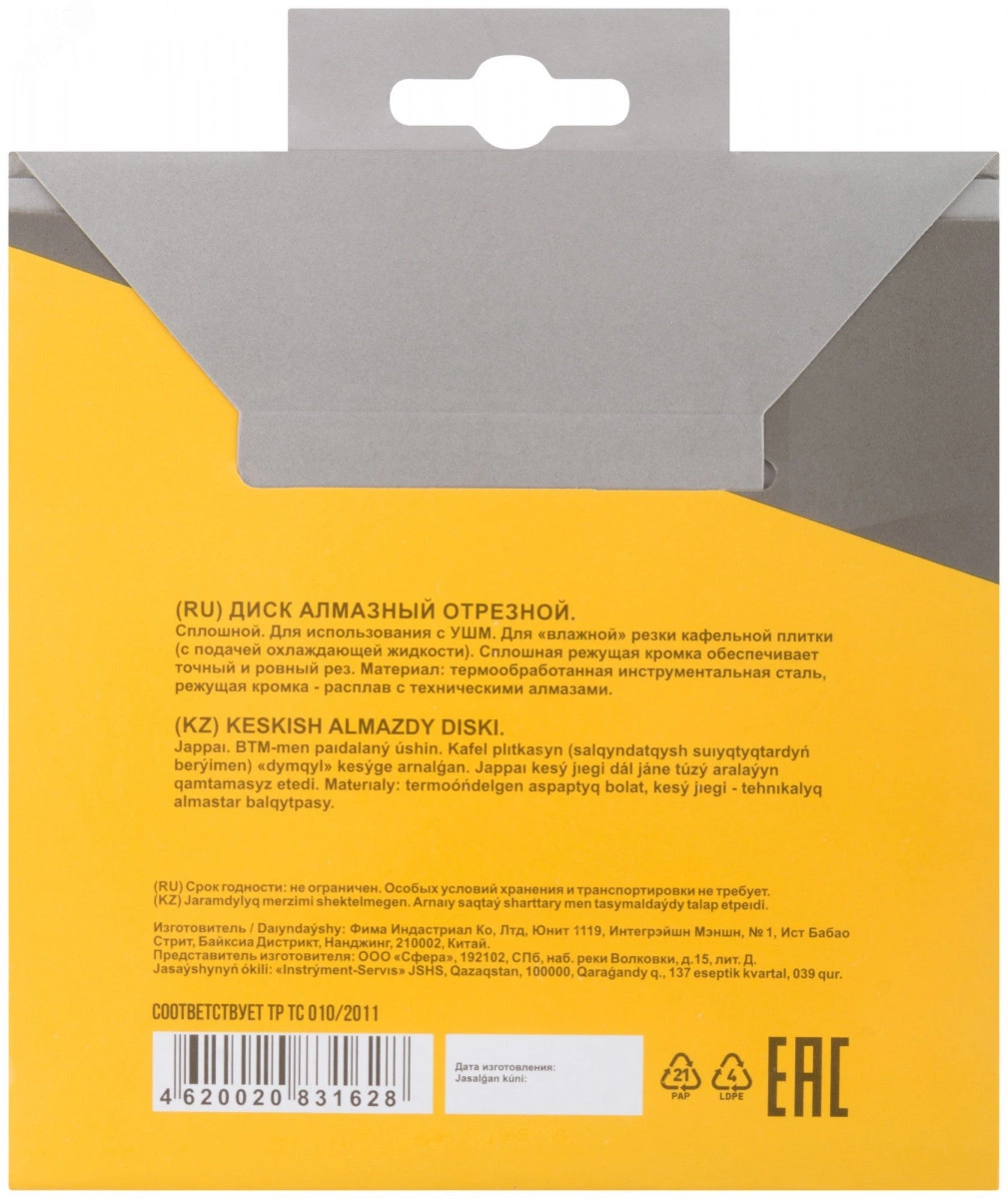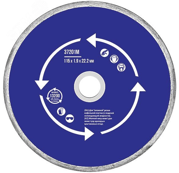 Диск отрезной алмазный сплошной (влажная резка), для работы с кафелем, 125х1.9х5.0х22.2 мм
