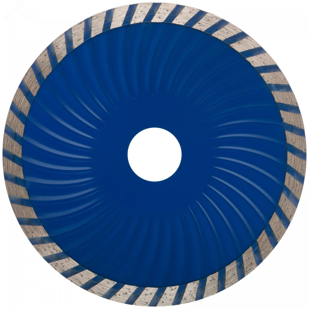 Турбо-волна'. Универсальный, усиленный, для глубокой сухой и влажной резки. Применяется для резки особо твердых материалов - бетона, кирпича, гранита, мрамора, камня. Посадочный диаметр 22,2 мм. Материал - высококачественная инструментальная сталь, режущая кромка содержит порошок из технических алмазов. Упаковка - картонный конверт.