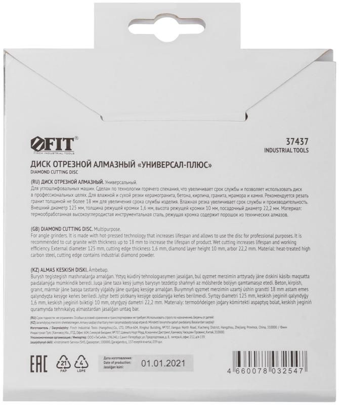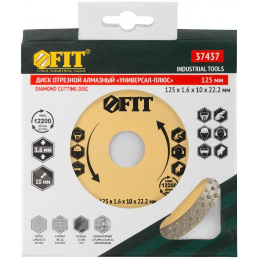 Полное описание: Диск отрезной алмазный "Универсал-Плюс" (сухая и влажная резка) 125х1.6х10х22.2мм FIT 37437