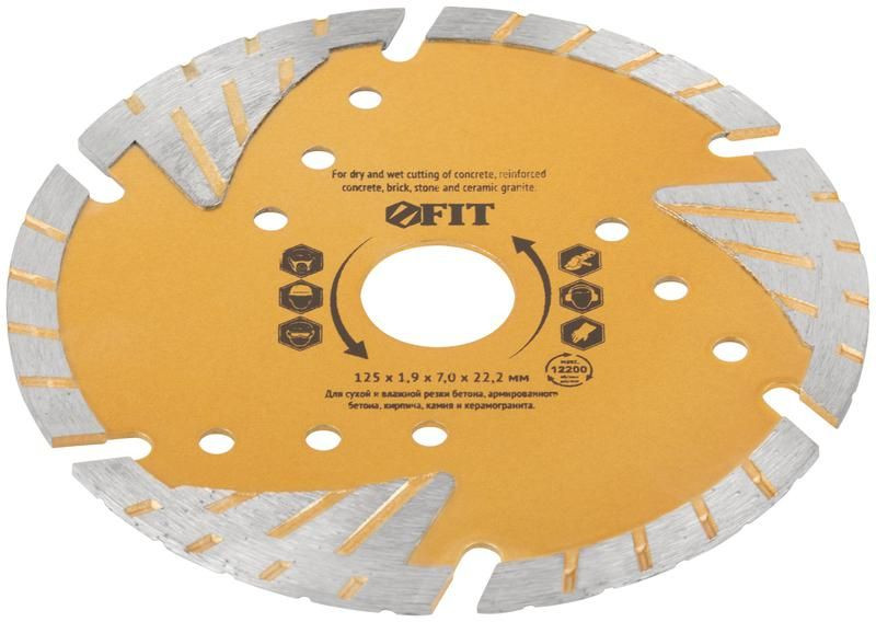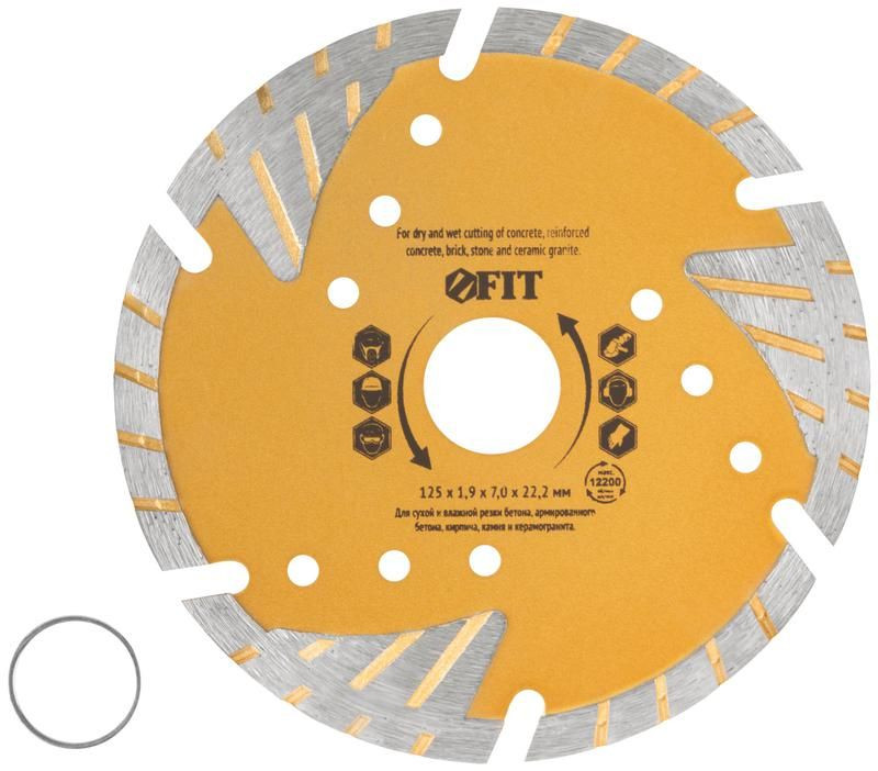 Полное описание: Диск отрезной алмазный универсальный с защитными секторами (сухая и влажная резка) 125х1.9х7х22.2мм FIT 37546