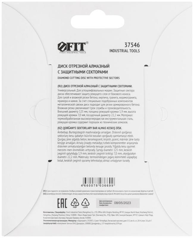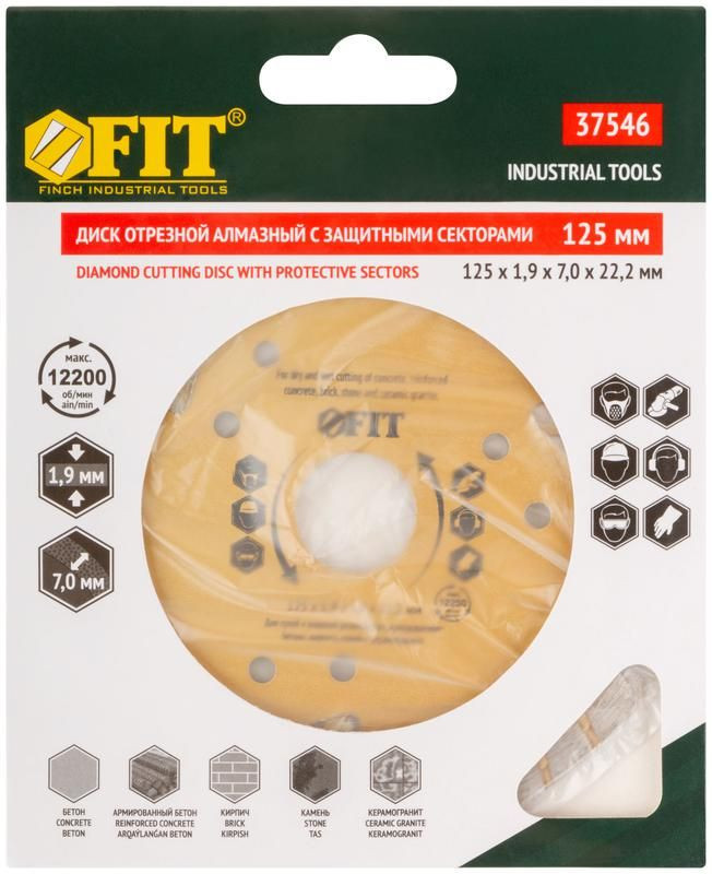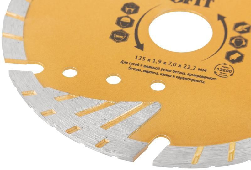Диск отрезной алмазный универсальный с защитными секторами (сухая и влажная резка) 125х1.9х7х22.2мм FIT 37546