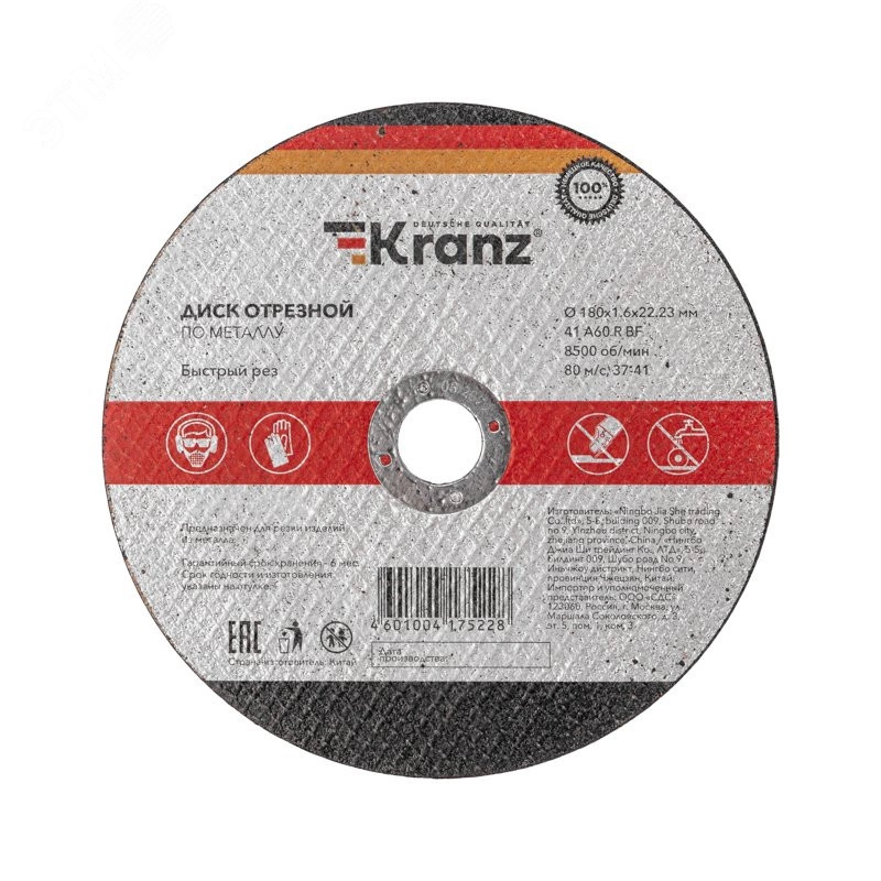 Отрезной диск Kranz предназначен для обрезки и обработки нержавеющих тонкостенных изделий из металла любой формы трубы, листы, профили, проволока и так далее. Применяется для решения общих задач во время работ с металлом, при контакте с диском материалы не разрушаются и сохраняют свои свойства.Подходит к большинству УШМ, имеющих стандартное посадочное отверстие (22,23 мм), во время установки необходимо руководствоваться стрелкой направления вращения диска. Изготовлен на бакелитовой основе (BF) с двумя слоями армированной стеклосетки, на которую нанесен шлифматериал