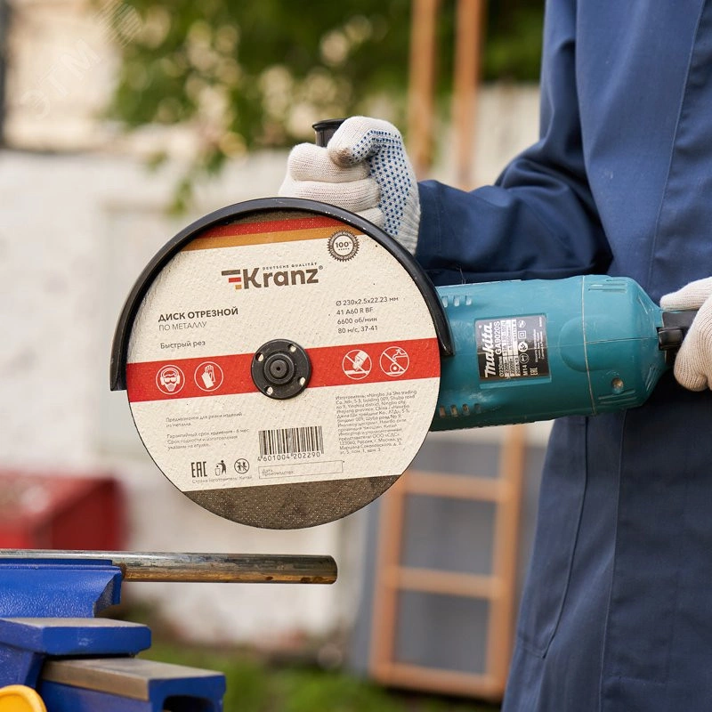 Отрезной диск Kranz предназначен для обрезки и обработки нержавеющих тонкостенных изделий из металла любой формы трубы, листы, профили, проволока и так далее. Применяется для решения общих задач во время работ с металлом, при контакте с диском материалы не разрушаются и сохраняют свои свойства.Подходит к большинству УШМ, имеющих стандартное посадочное отверстие (22,23 мм), во время установки необходимо руководствоваться стрелкой направления вращения диска. Изготовлен на бакелитовой основе (BF) с двумя слоями армированной стеклосетки, на которую нанесен шлифматериал