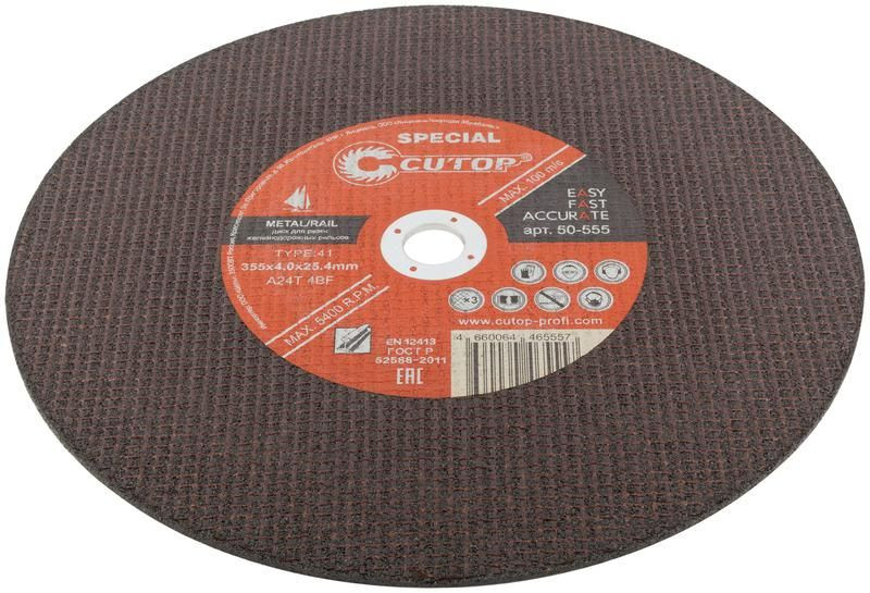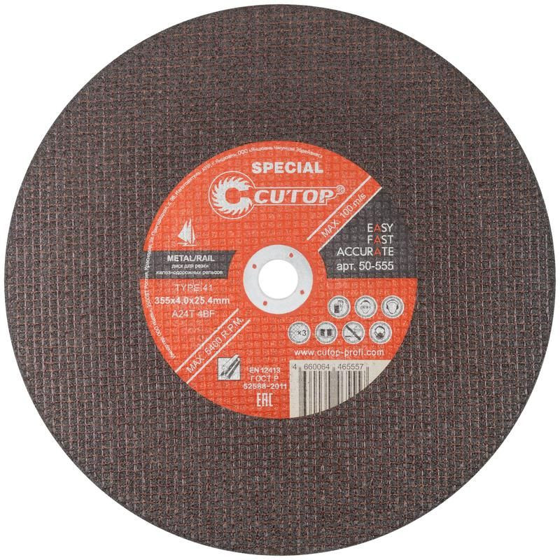 Диск отрезной по металлу для резки железнодорожных рельсов Special Т41-355х4.0х25.4мм Cutop 50-555