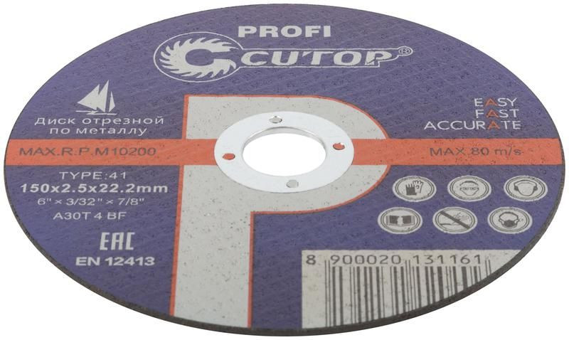 Диск отрезной по металлу и нержавеющей стали Т41-150х2.5х22.2мм Profi Cutop 39986т