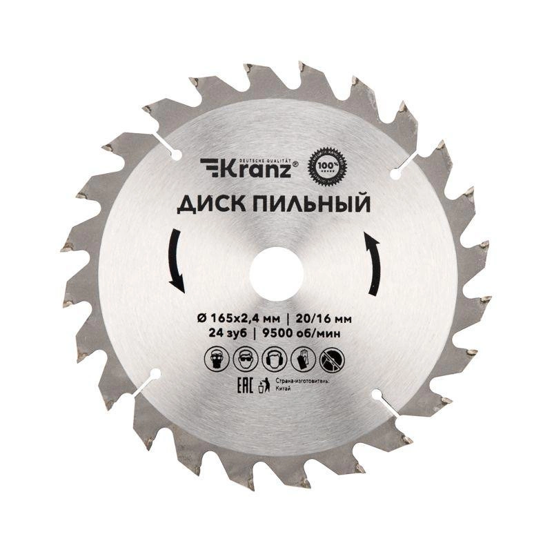 Полное описание: Диск пильный 165мм х24зуб х20/16мм Kranz KR-92-0105