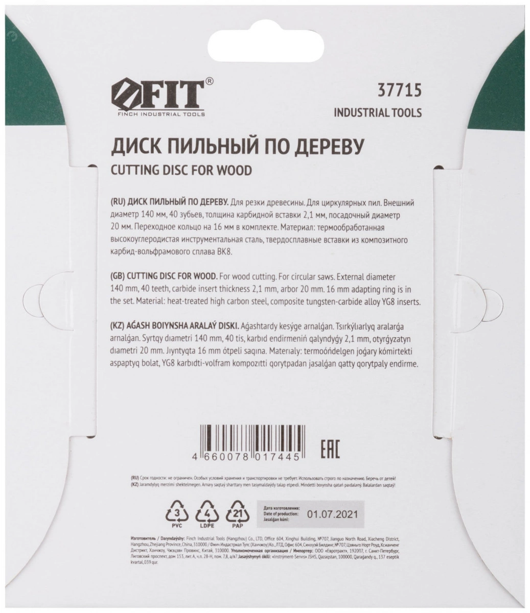 По дереву. Материал - высокоуглеродистая сталь, карбидные режущие вставки. Упаковка - картонный конверт.