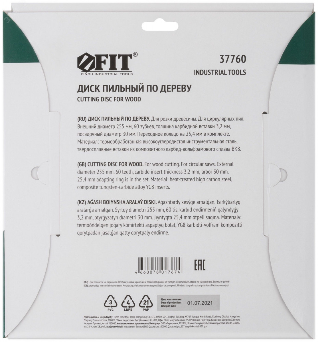 Диск пильный для циркулярных пил по дереву 255x30/25.4x60T
