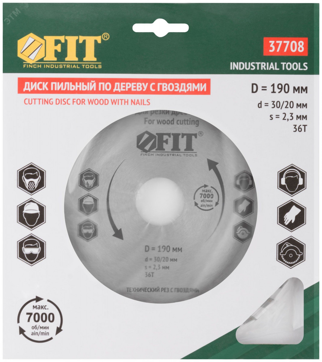 Диск пильный для циркулярных пил по дереву, технический рез с гвоздями 190 х 30/20 х 36T