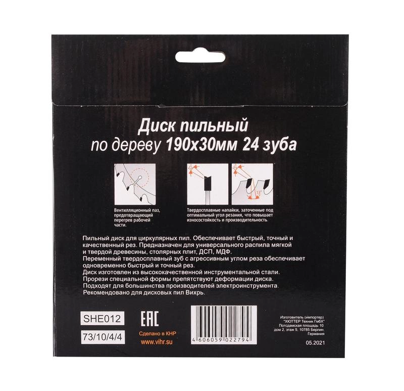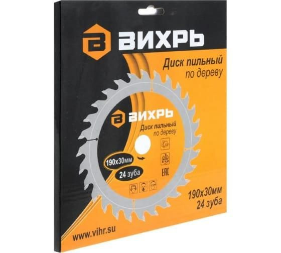 Полное описание: Диск пильный по дереву 190х30мм 24 зуба Вихрь 73/10/4/4