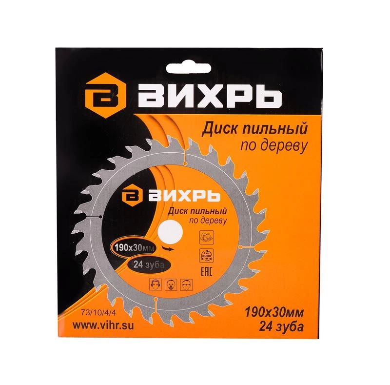 Диск пильный по дереву 190х30мм 24 зуба Вихрь 73/10/4/4