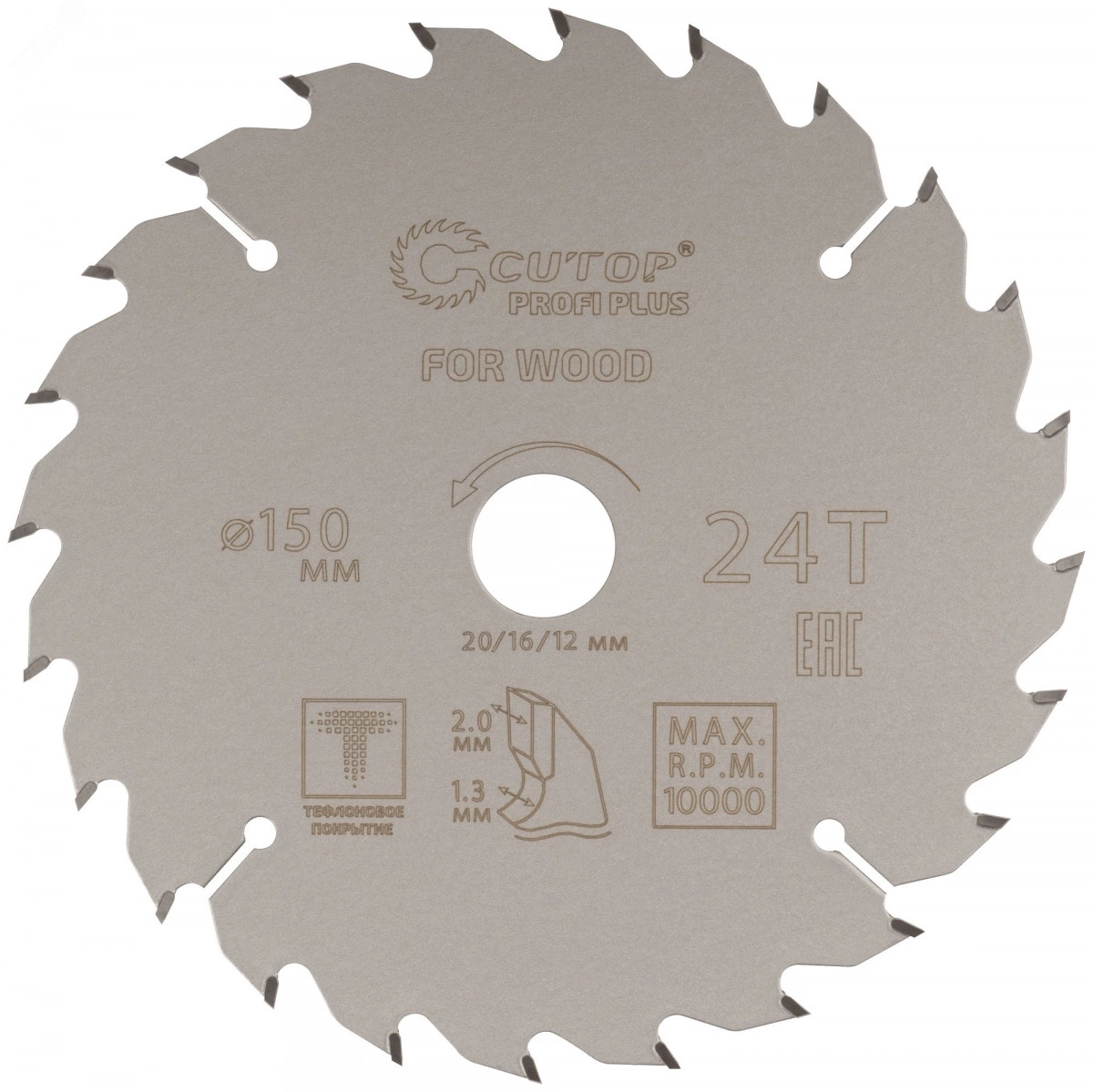 Диск пильный по дереву с тефлоновым покрытием 24Т, CUTOP Profi plus, 150 х 1,3/2,0 х 20/16/12 мм