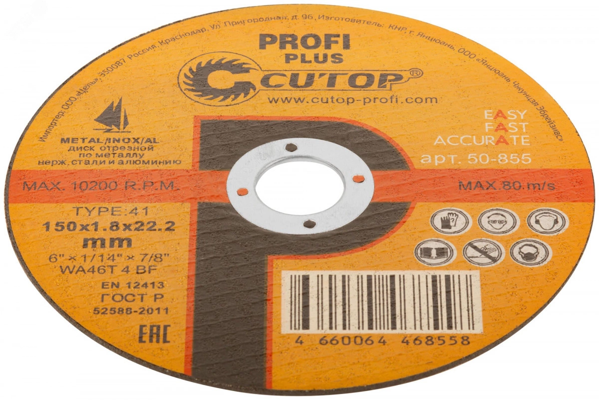 Диск профессиональный отрезной по металлу, нержавеющей стали и алюминию Cutop Profi Plus, Т41-150 х 1,8 х 22,2 мм