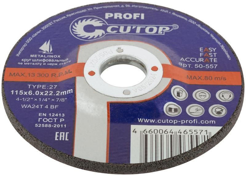 В нашем интернет-магазине вы можете купить Диск шлифовальный по металлу и нерж.стали Profi Т27-115х6.0х22.2мм Cutop 50-557 в Екатеринбурге, артикул 50-557. Чтобы уточнить условия оплаты, доставки и действующие скидки на товар, свяжитесь с нашим менеджером по телефону +7 (343) 266-30-88.