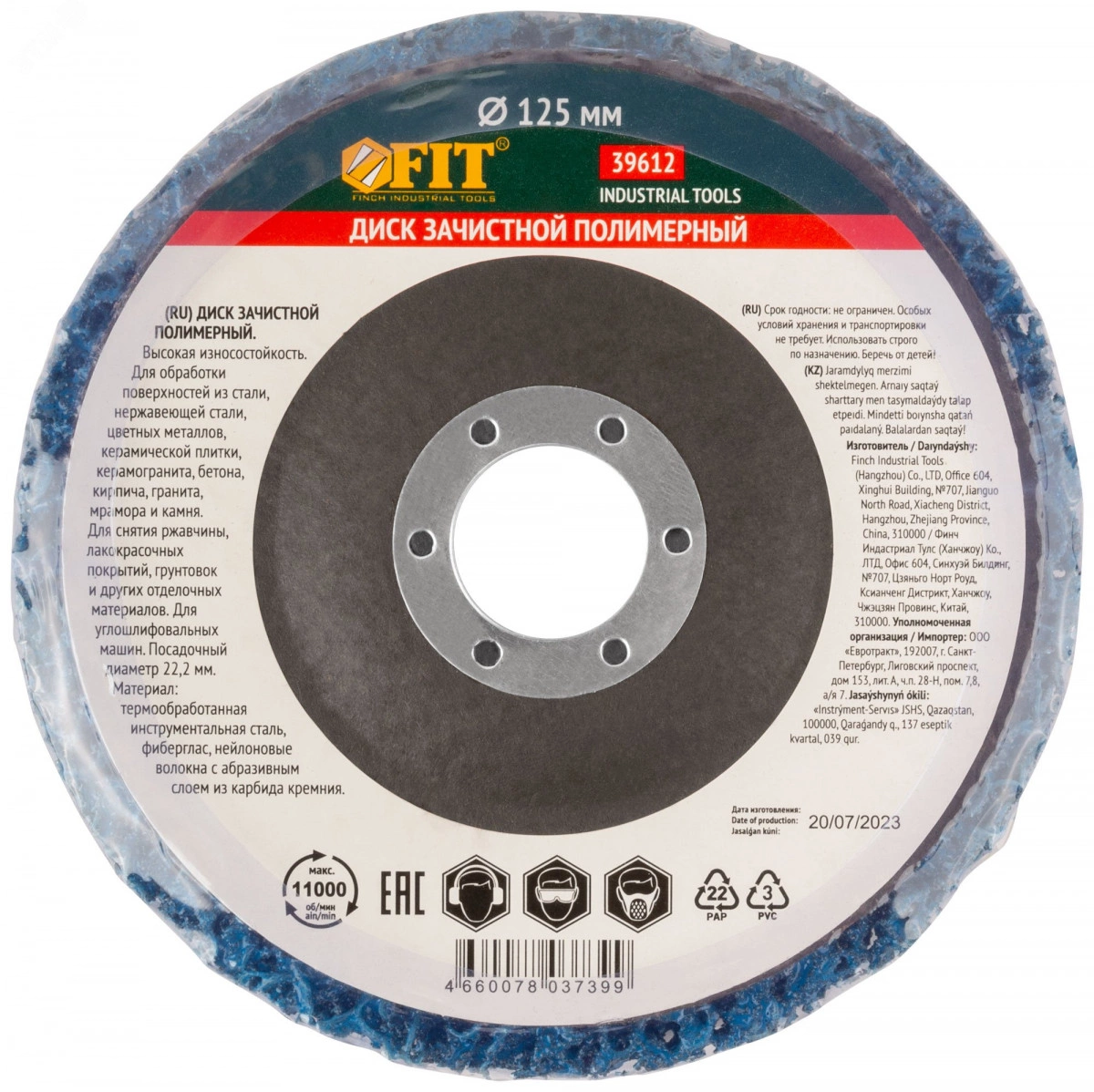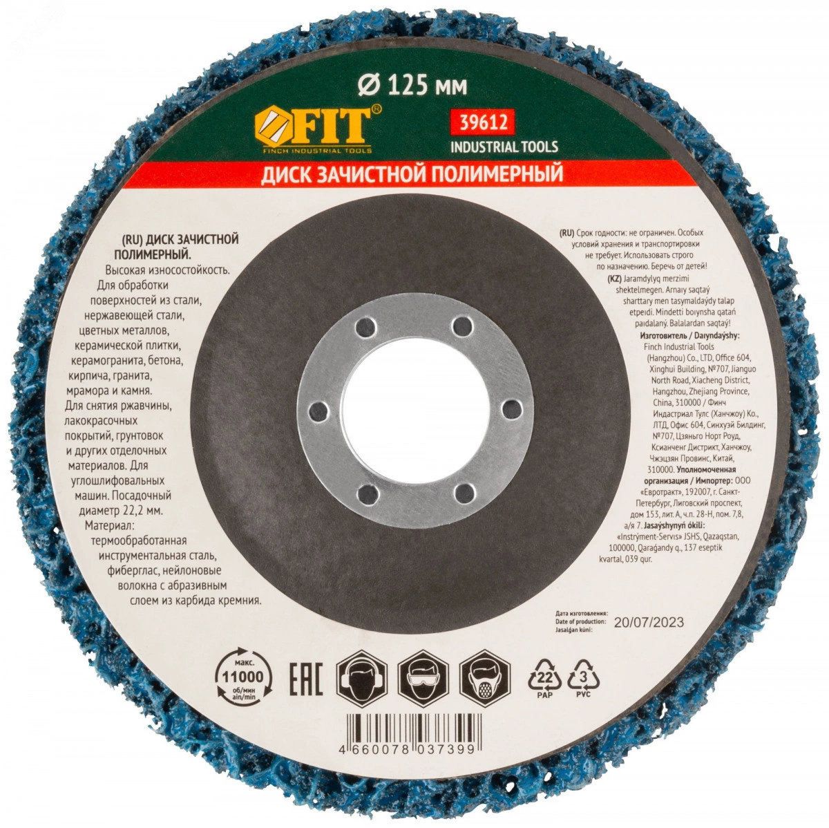 Диск зачистной полимерный FIT IT предназначен для обработки поверхностей из стали, нержавеющей стали, цветных металлов, керамической плитки, керамогранита, бетона, мрамора и камня. Используется с УШМ для снятия ржавчины, лакокрасочных покрытий, грунтовок и других отделочных материалов. Не требует сильного нажима при работе. За счет увеличенного содержания абразивных частиц и объема нейлоновых волокон диск обладает высокой износостойкостью. Грубая зернистость и агрессивная структура повышают скорость выполнения работ. Нейлоновая основа в сочетании с карбид-кремниевым абразивом высокоэффективно зачищает поверхности от различных загрязнений без их повреждения. Усиленная фибергласовая основа обеспечивает высокую прочность диска. Рекомендуется использовать УШМ с регулировкой оборотов и устанавлиать частоту оборотов 4500 об/мин.