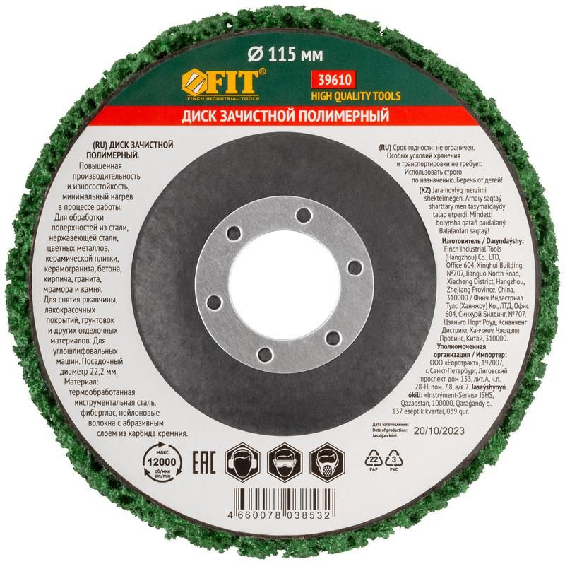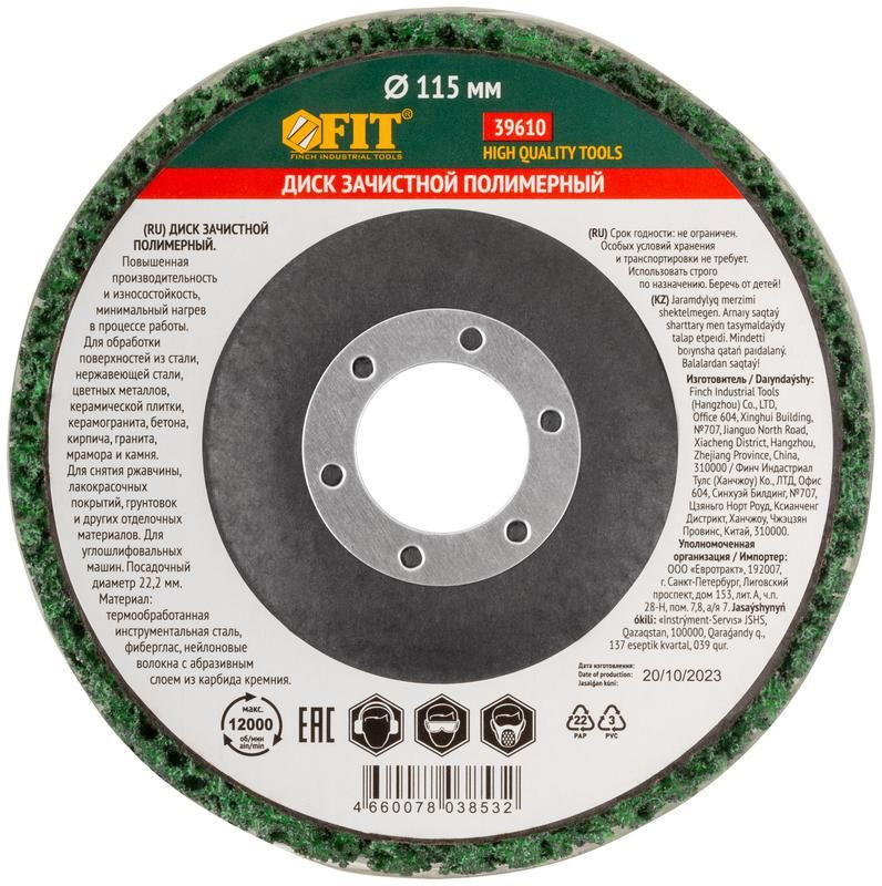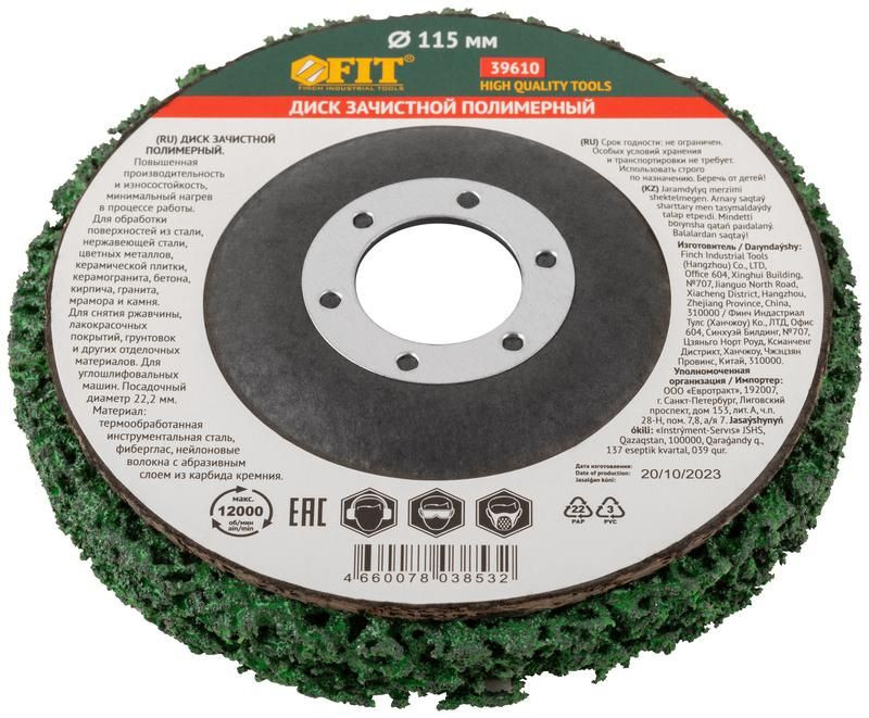Полное описание: Диск зачистной полимерный посадочный d22.2мм 115мм зел. FIT 39610