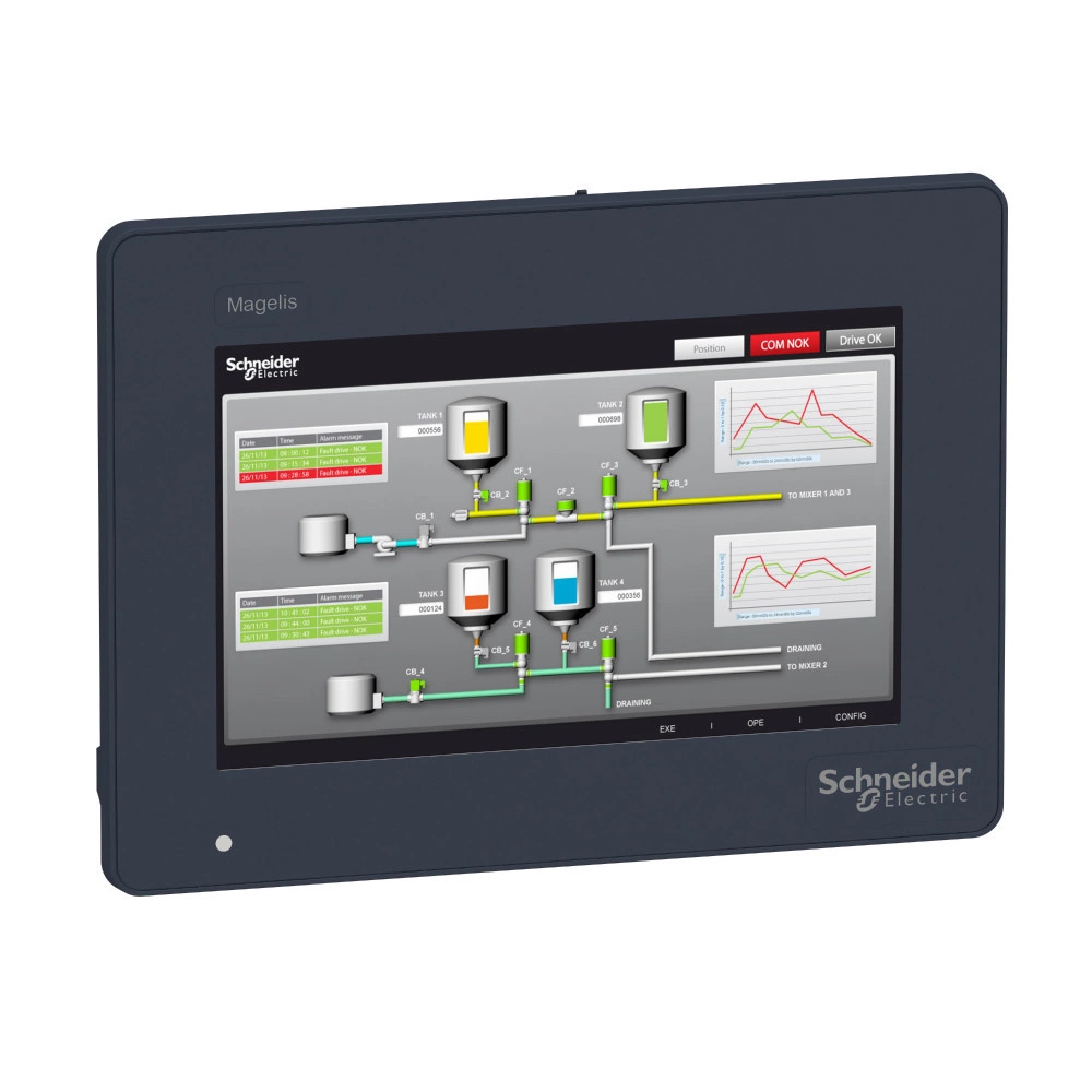 Этот универсальный сенсорный дисплей оператора идеально подходит для высокопроизводительного мониторинга и связи благодаря интерфейсу, как у смартфона, для использования в самых требовательных системах автоматизации, включая промышленное контрольное оборудование, суровые условия и локации в море. На экране отображаются текстовые сообщения, графические объекты и мнемосхемы, осуществляется управление и настройка данных. В дисплее такде предусмотрено съемное хранилище, двойная локальная сеть и двойной интерфейс связи.