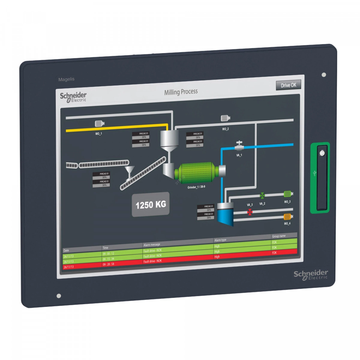 Этот универсальный сенсорный дисплей оператора идеально подходит для высокопроизводительного мониторинга и связи благодаря интерфейсу, как у смартфона, для использования в самых требовательных системах автоматизации, включая промышленное контрольное оборудование, суровые условия и локации в море. На экране отображаются текстовые сообщения, графические объекты и мнемосхемы, осуществляется управление и настройка данных. В дисплее такде предусмотрено съемное хранилище, двойная локальная сеть и двойной интерфейс связи.