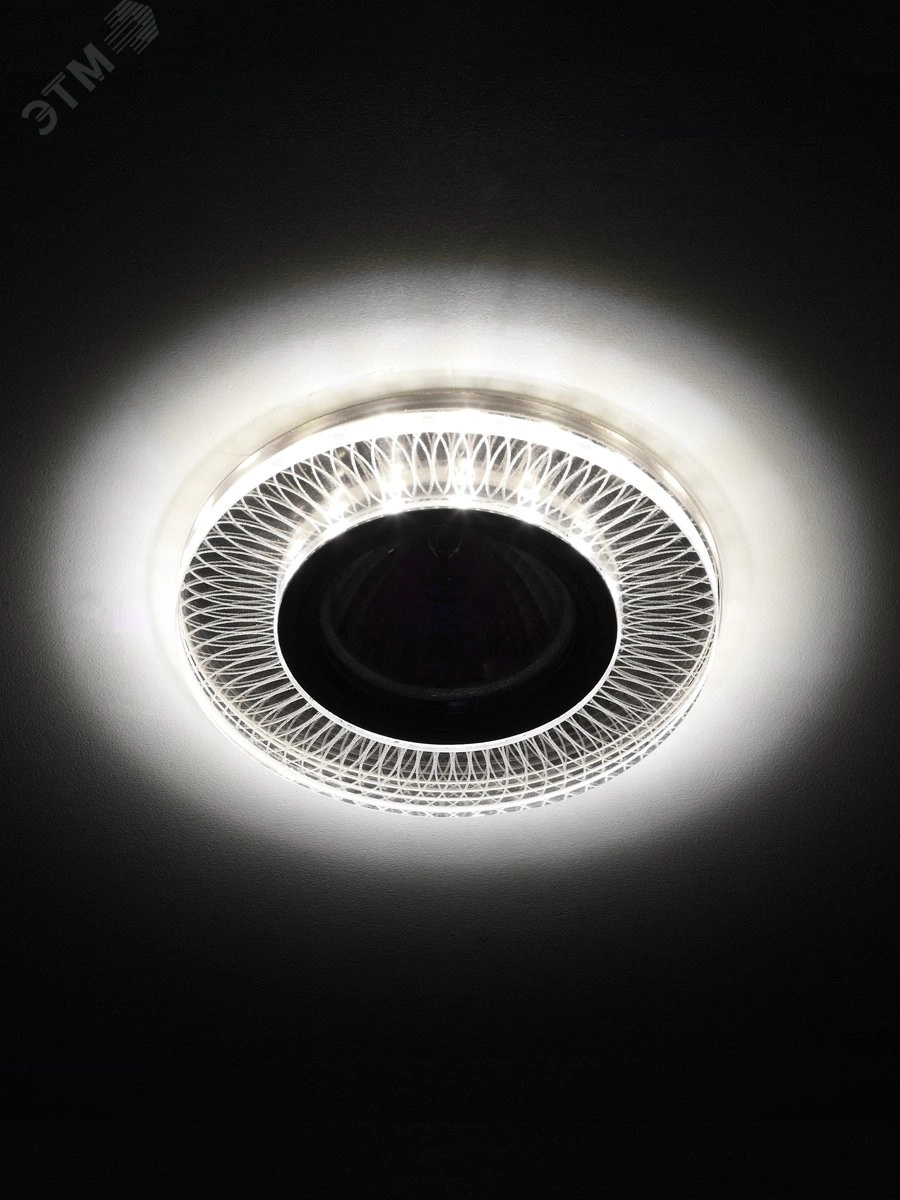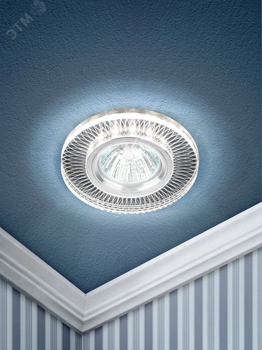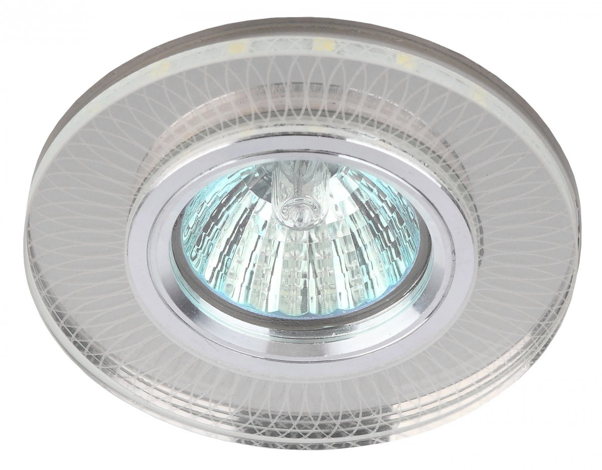 Светильник со светодиодной подсветкой можно разместить в спальне, в детской или на кухне. Светильник с подсветкой можно использовать как в качестве главного освещения, так и для создания акцентов в определенных зонах помещения. Благодаря скрытой части корпуса светильники можно встраивать в потолок или стены, создавая разный дизайн помещений. Прозрачный корпус светодиодной подсветки выполнен из полимера, а цветовая температура составляет 4000К. Максимальная мощность лампы – 50 Вт.  Корпус встраиваемого светильника изготовлен из ударопрочного и стойкого к коррозии металла - алюминия, что делает его особенно удобным в эксплуатации. Диаметр отверстия, требуемого для установки светильника составляет 60 мм, а диаметр самого светильника – 95 мм. Цоколь под лампу GU5.3 в комплекте. Внимание - лампа не входит в комплектацию.