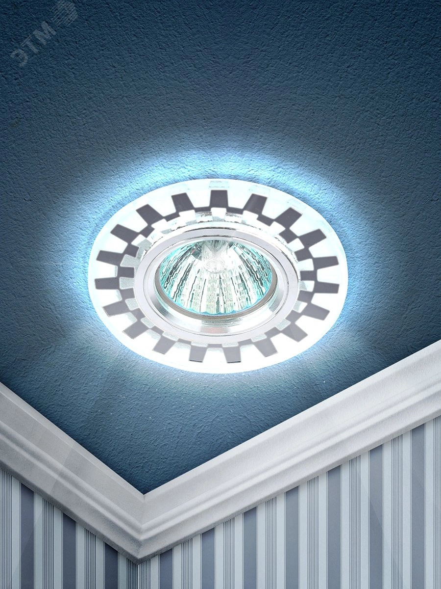 Точечные светильники DK LD47 SL выполнен из алюминия и стекла, отличающихся своими прочностью и долговечностью. Внешний размер светильника - 95*25 миллиметров, а монтажный - 60 миллиметров. Для данного светильника подойдет лампа MR16 с цоколем GU5. 3. Светильник оснащен светодиодной подсветкой, которая создаст особенную атмосферу в помещении/комнате. Цвет подсветки - белый, он будет выигрышно смотреться и подчеркивать детали в помещении. Степень защиты светильника - IP20, она дает возможность устанавливать его в разных помещениях, кроме тех, где повышена влажность. Светильник с зеркальными элементами, благодаря чему его можно размещать в самых разных по стилю интерьерах - минимализм, хай-тек, модерн, прованс или скандинавский. После установки Ваша комната преобразится и наполнится приятной атмосферой. Внимание! Лампа не входит в комплект.