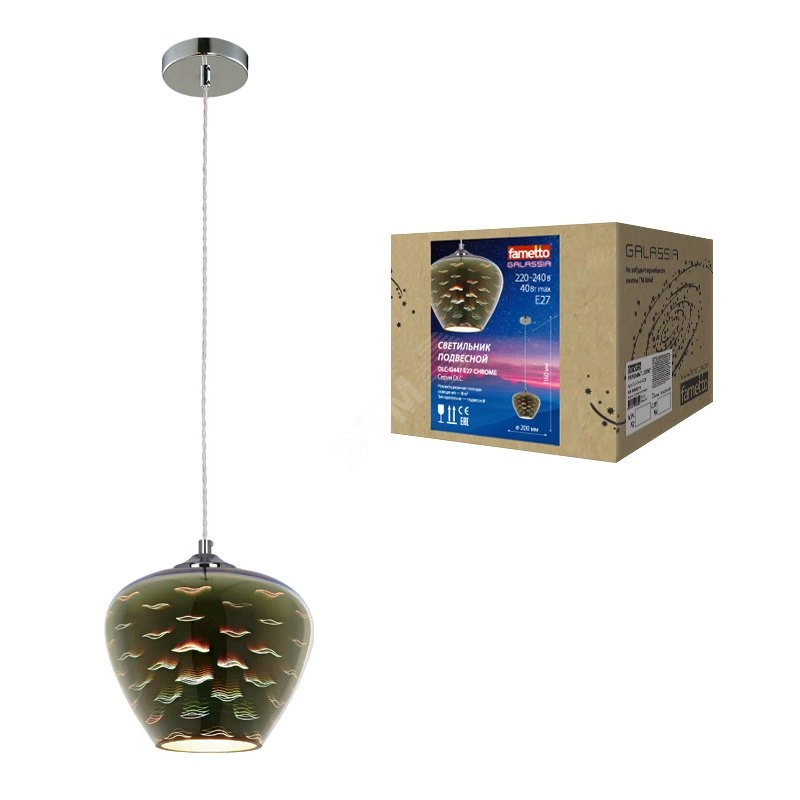 В нашем интернет-магазине вы можете купить DLC-G447 E27 CHROME Светильник декоративный подвесной ТМ ''Fametto'', серия ''Galassia''. Без лампы. Материал металл, стекло, цвет хром. d-200 мм, h-1165мм в Екатеринбурге, артикул DLC-G447-1008. Чтобы уточнить условия оплаты, доставки и действующие скидки на товар, свяжитесь с нашим менеджером по телефону +7 (343) 266-30-88.