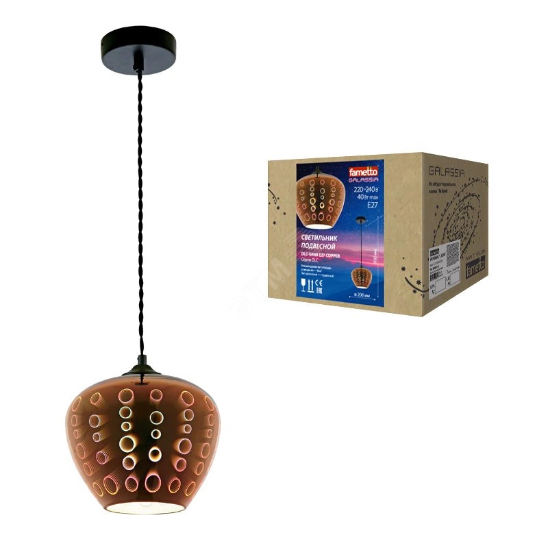 Полное описание: DLC-G448 E27 COPPER Светильник декоративный подвесной ТМ ''Fametto'', серия ''Galassia''. Без лампы. Материал металл, стекло, цвет медный. d-200 мм, h-1165мм