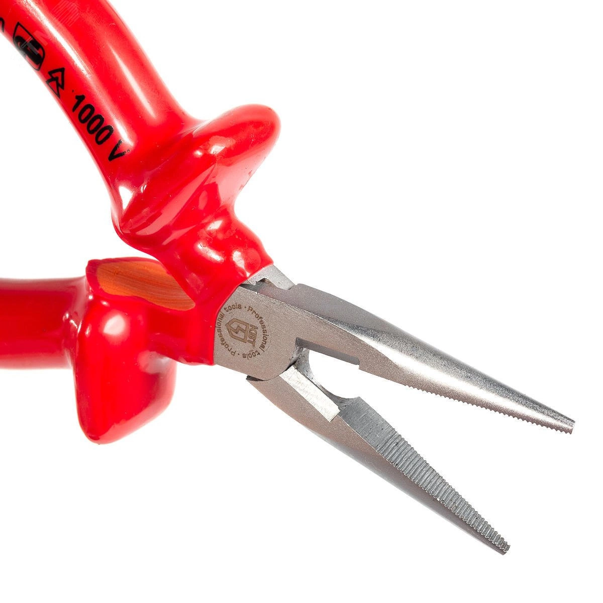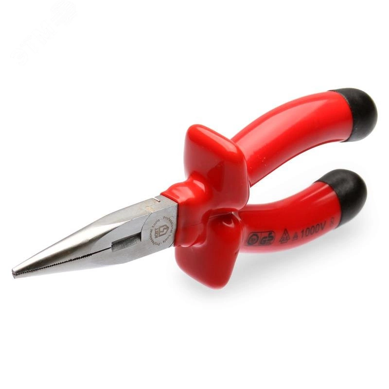 Для работы под напряжением до 1000 В. Материал рукояток - двухслойная диэлектрическая пластизоль. Внутренняя изоляция - желтого цвета, внешний слой изоляции - красного цвета. Захватные губки с зубцами и режущими кромками для среднетвердой и твердой проволоки, Режущие кромки дополнительно закалены токами высокой частоты. HRC 62. Материал рабочей части - хром-ванадиевая сталь. Обработка поверхности - матовое никелирование. Вес - 180 г. Длина - 160 мм